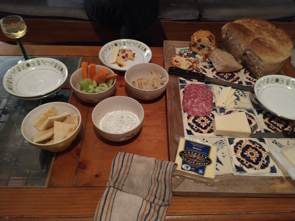 - Maj made a wine-and-cheese book club supper for us to enjoy while we book clubbed. Unfortunately due to our complex network of selective misophonias, we had to stagger our eating and drinking, but we managed to get some snacks and discussions in.