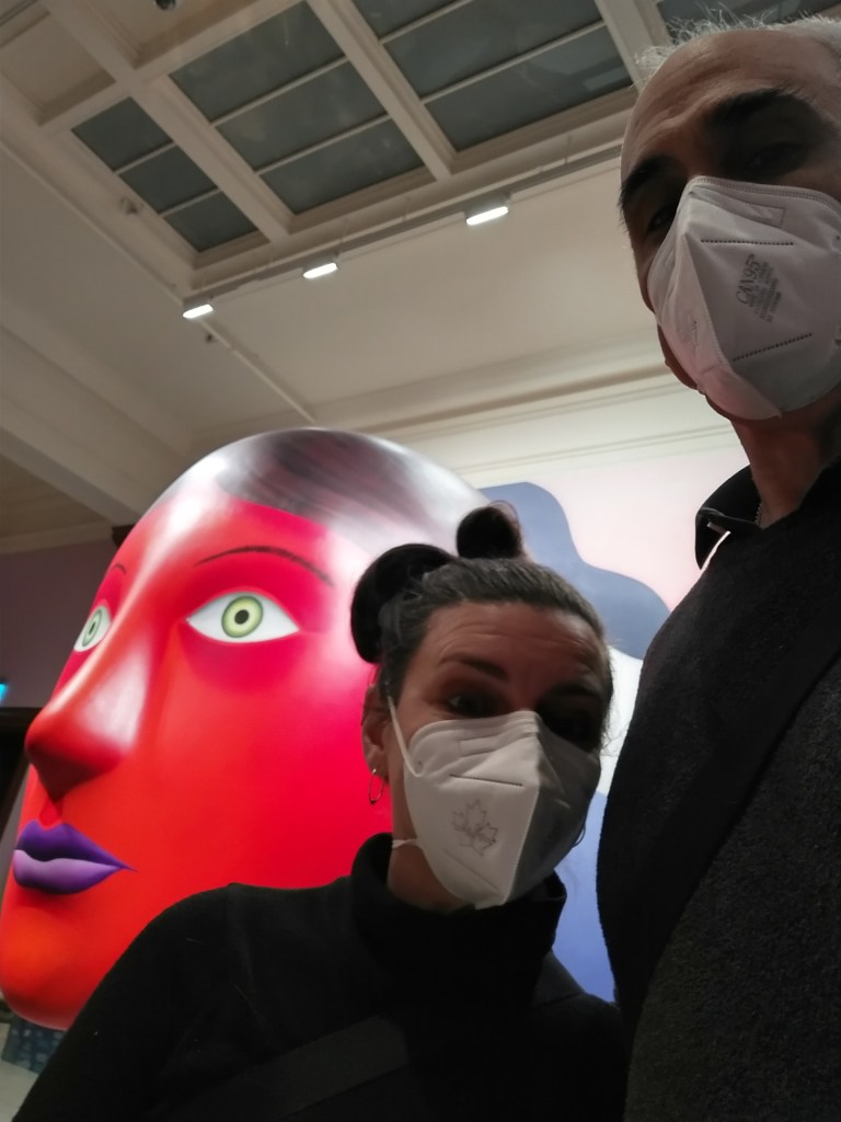 We celebrated by going to the Musée des Beaux-arts and seeing the exhibit by Nicolas Party. They had a late-night viewing for the Nuit Blanche in Montreal. Afterwards, we passed by the ice rink in the Quartier des Spectacles.