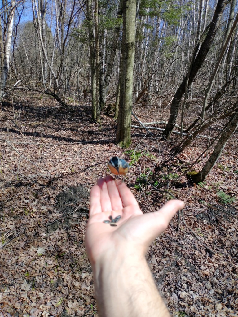 We went to the nearby bird sanctuary, which had bags of sunflower seeds to share with the songbirds.
