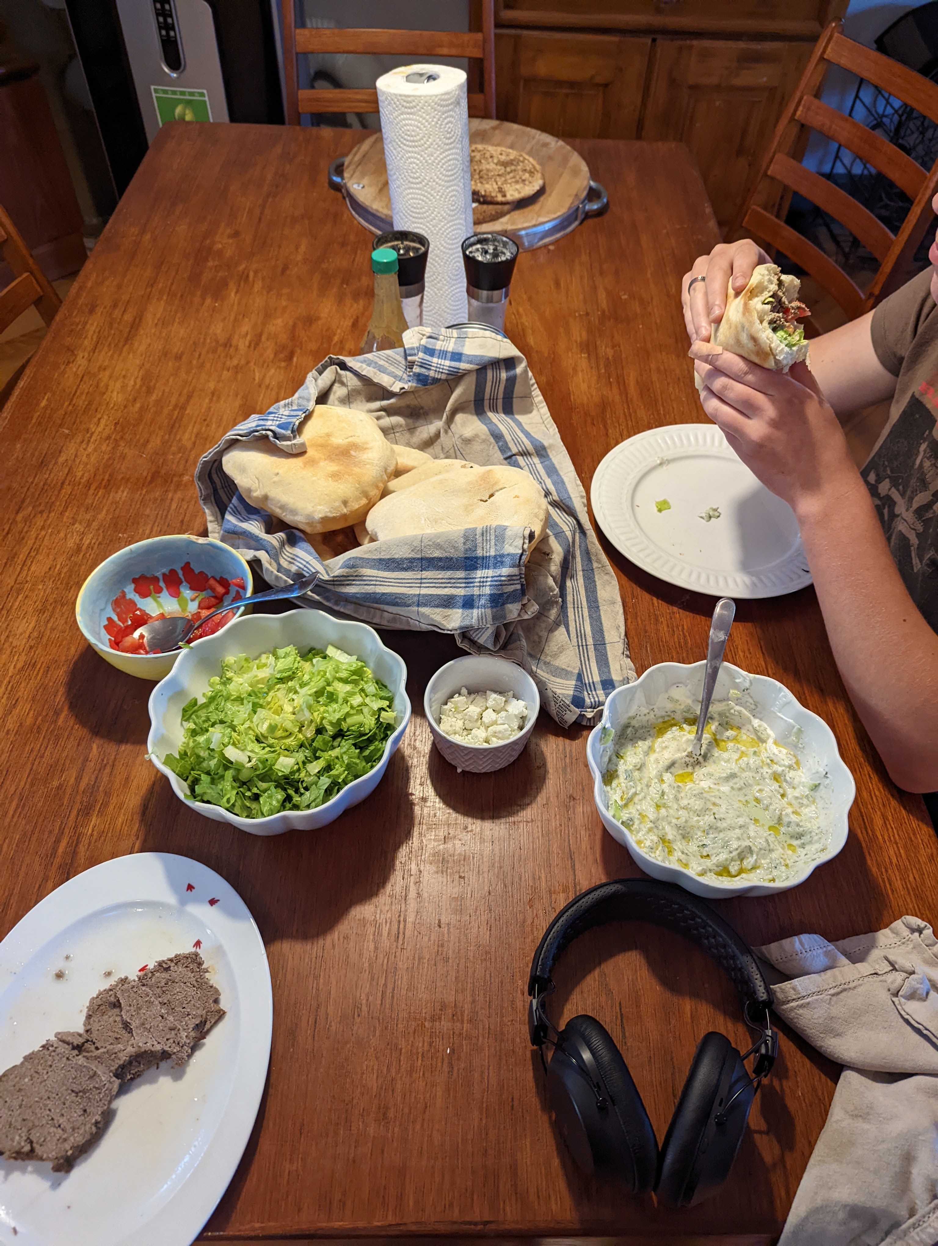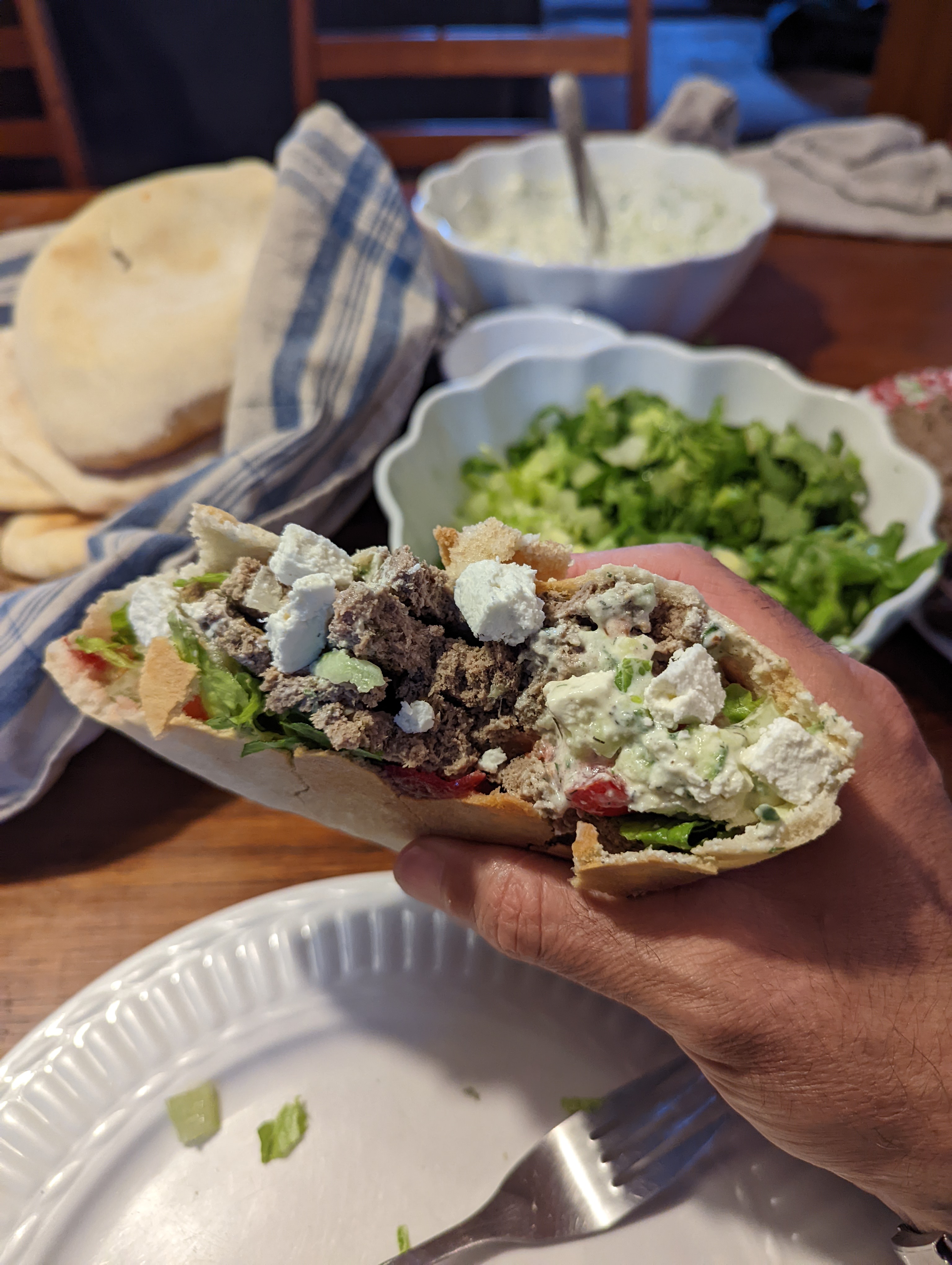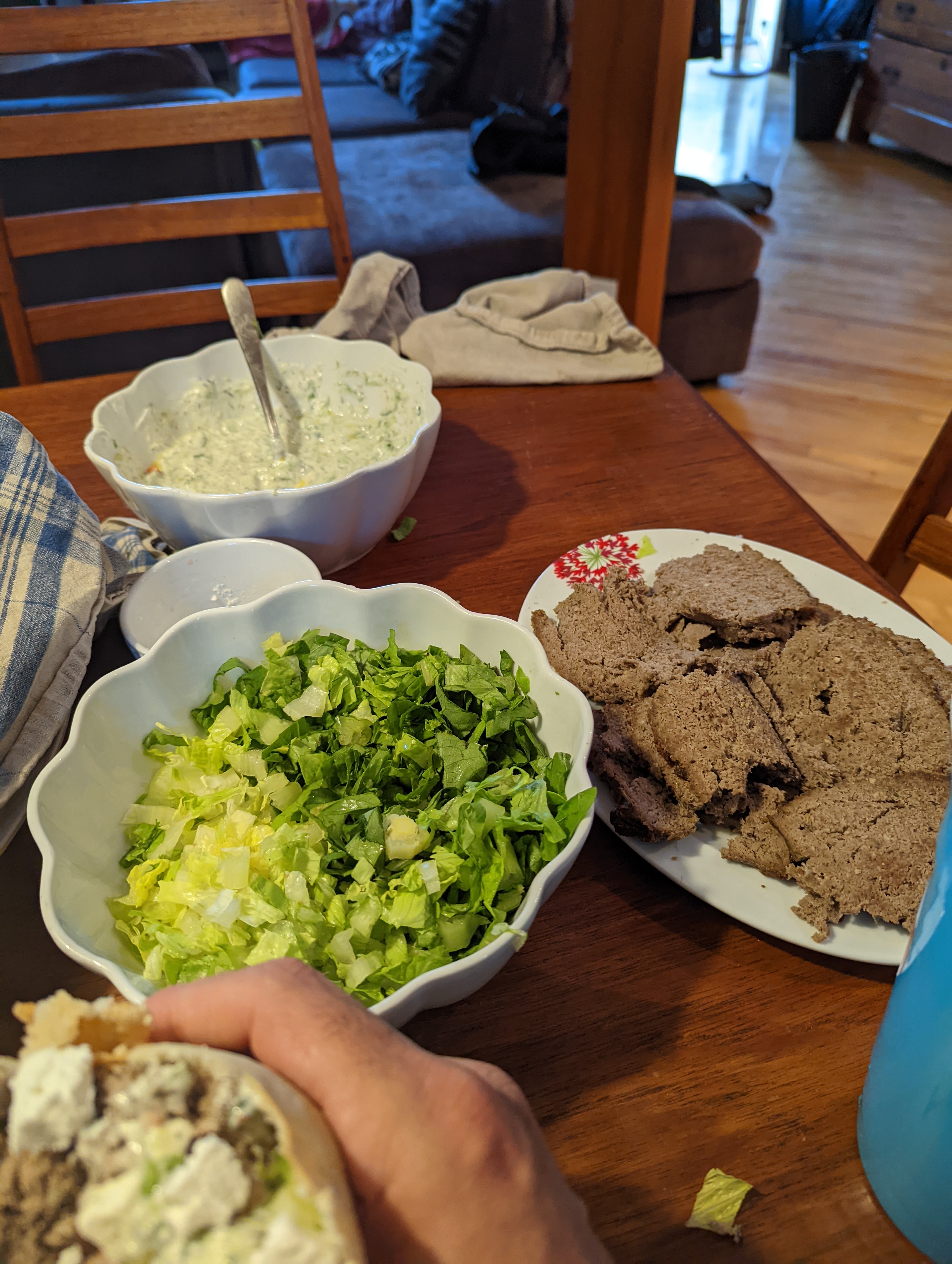 AJ asked for gyros for Topological Taco Tuesday. (We eat foods with carbs on three sides on Tuesdays).